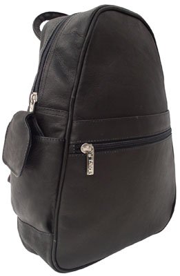 Black Piel Leather Three Zip Hobo Sling Backpack