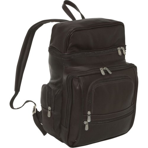 Piel Leather Flip Top Computer Backpack. Sleek protection for your laptop. For over 33 years, Piel Leather has remained the internationally recognized Leader in Naked Leather. Our high standards for quality and workmanship have allowed us to produce leather goods of exceptional distinction and durability. As the pioneer of some of the finest naked leather goods available, Piel Leather is able to provide a spectrum of leather goods to suit your every need. By remaining completely dedicated to our craft, we have survived as the leading manufacturer and distributor of naked leather products. The Flip Top Computer Backpack features a top horizontal zipper opening to large main compartment with a padded laptop pocket (12" x 13" x 2") and top pocket for accessories. Front zippered compartment with dividers for file folders, etc. Front half moon pocket reveals full organizer. Two side zip-pockets, front zip-pocket, top handle for easy carrying, and adjustable padded/reinforced straps. Dimensions: 16"L x 12.5"W x 5"H ; Weight: 4.00 lbs